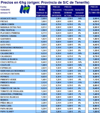 Esta semana el precio medio ponderado, (valor de la cesta de la Compra), de los productos hortofrutícolas locales disminuye 4 céntimos alcanzando los 1,10 €/kg, un valor acorde a la…